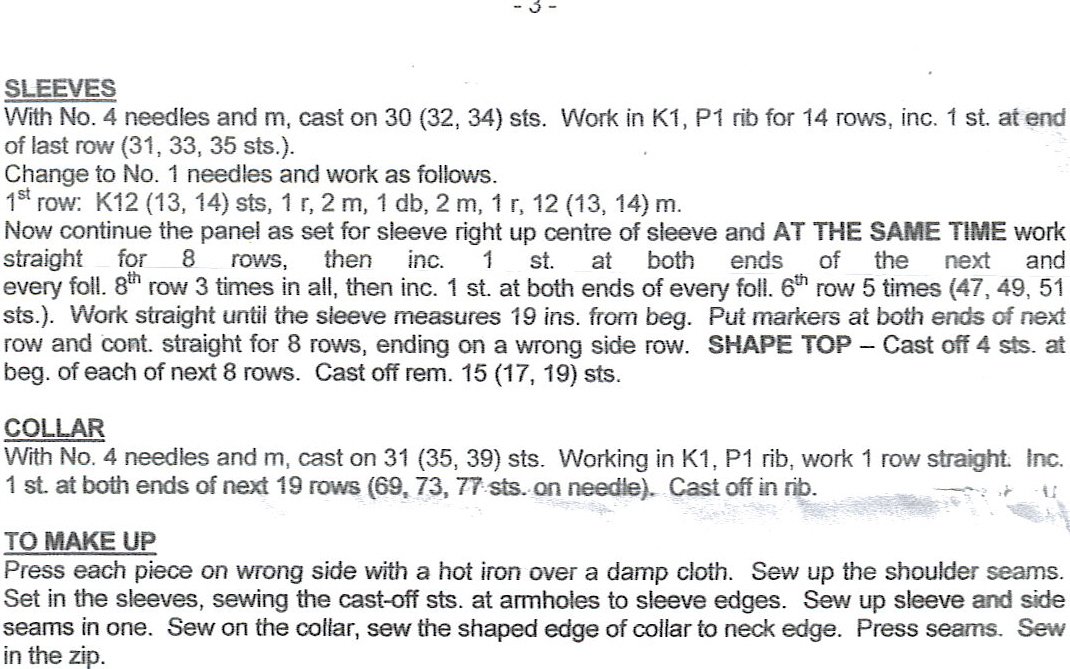 like the usual knitting pattern. It looks as though it has just been typed out