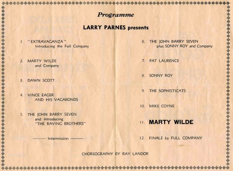 This is the programme from Billy's professional debut on October 2, 1958, kindly supplied by Vince Eager. It was too late, of course, for Billy's name to be added.